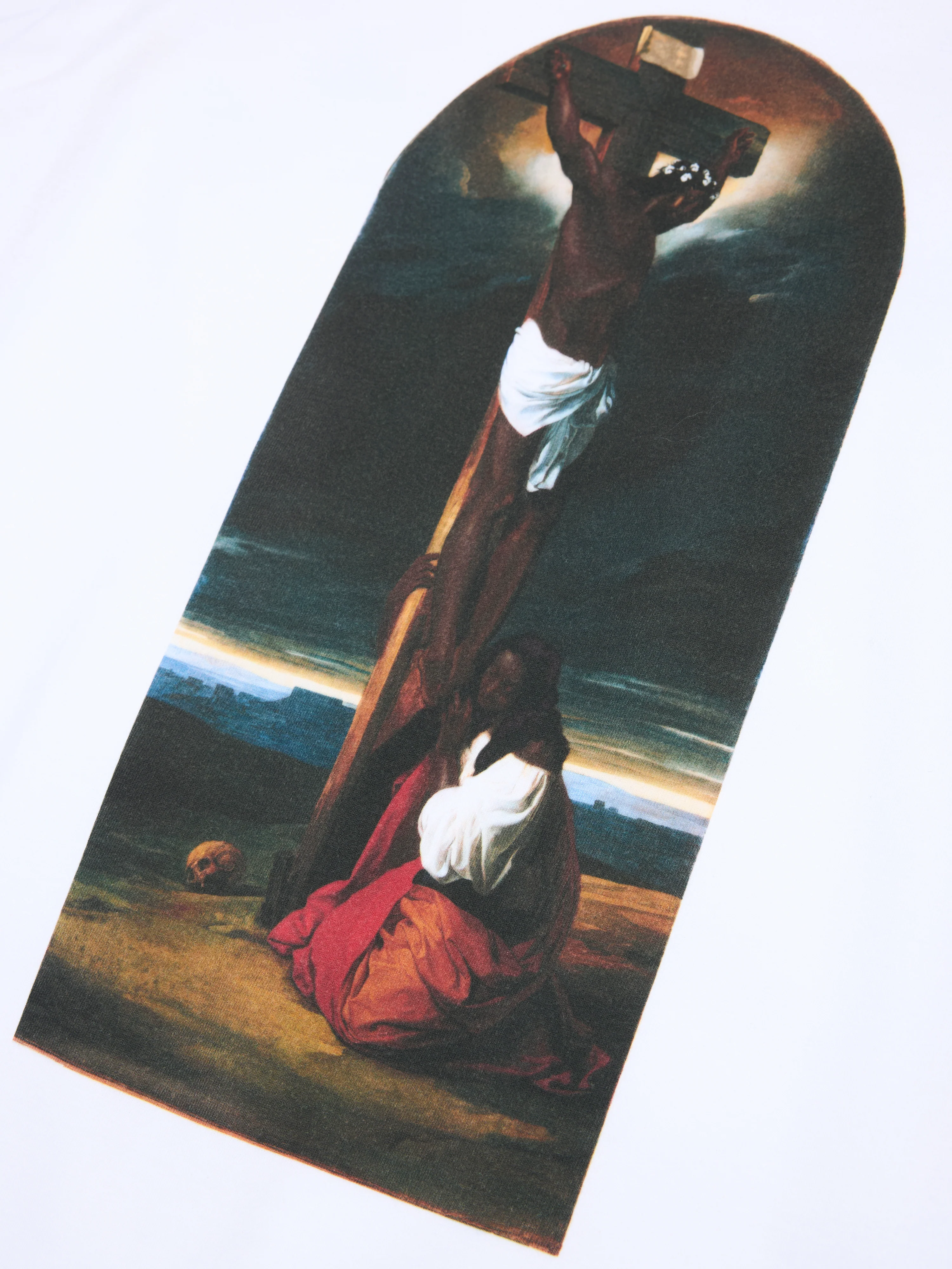 Produced in 100% cotton and cut to a regular fit, our SS26 Seasonal Biblical Tee features a printed Black Jesus on the chest.Ā